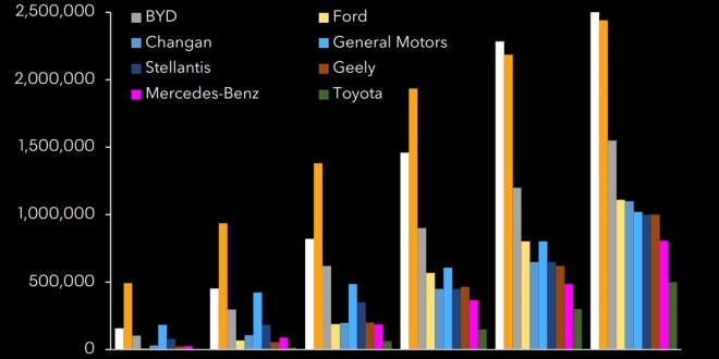 تشير الدراسة أيضاً أن شركة BYD الصينية ستكون ثالث أكبر شركة للسيارات الكهربائية في العالم من هذا العام، وإلى أنها ستحتفظ بهذا المركز خلال 2023 و2024 و2025. ومن ناحية أخرى تشير الدراسة إلى أن نمو السيارات الكهربائية ككل لن يكون بالسرعة التي يتوقعها الجميع.