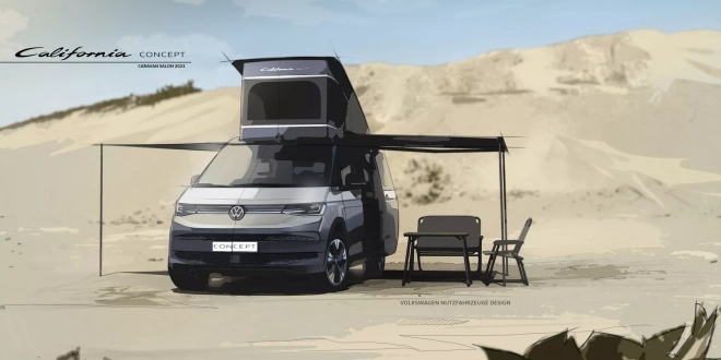 ستكشف فولكس فاجن عن سيارة اختبارية هجينة تعتمد على سيارة الفان T7، والتي تشوق للجيل التالي من سيارة التخييم، كاليفورنيا.
