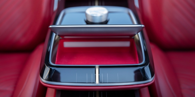 بشكل غير مفاجئ، اختارت كاديلاك اللون الأحمر ليكون اللون الرئيسي للمقاعد والتشطيبات الجلدية، وفي نفس الوقت تحمل السيارة الكثير من التطعيمات المعدنية والزجاجية. ونشاهد في أحد الصور كونسول وسطي مع شاشة مائلة للخلف، والذي يبدو مخصصاً لركاب الصف الثاني.