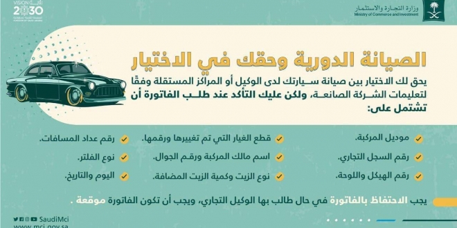 ولكن بعض المستهلكين يتفادون صيانة سيارتهم لدى الوكلاء بسبب الارتفاع الأسعار، ويتخوّف الكثير من إلغاء ضمان السيارة في حال عدم استمرار العميل في الصيانة الدورية لسيارته لدى الوكالة حسب جدولهم المقترح، لذلك قامت وزارة التجارة بإصدار قرار يفرض على الوكيل والمصنع استمرار ضمان سيارة العميل في حال قيامه بعمل الصيانة الدورية خارج الوكالة ولكن بشروط وضوابط محددة حتى تحفظ حقوق الطرفين دون المساس بحق أي منهم.
